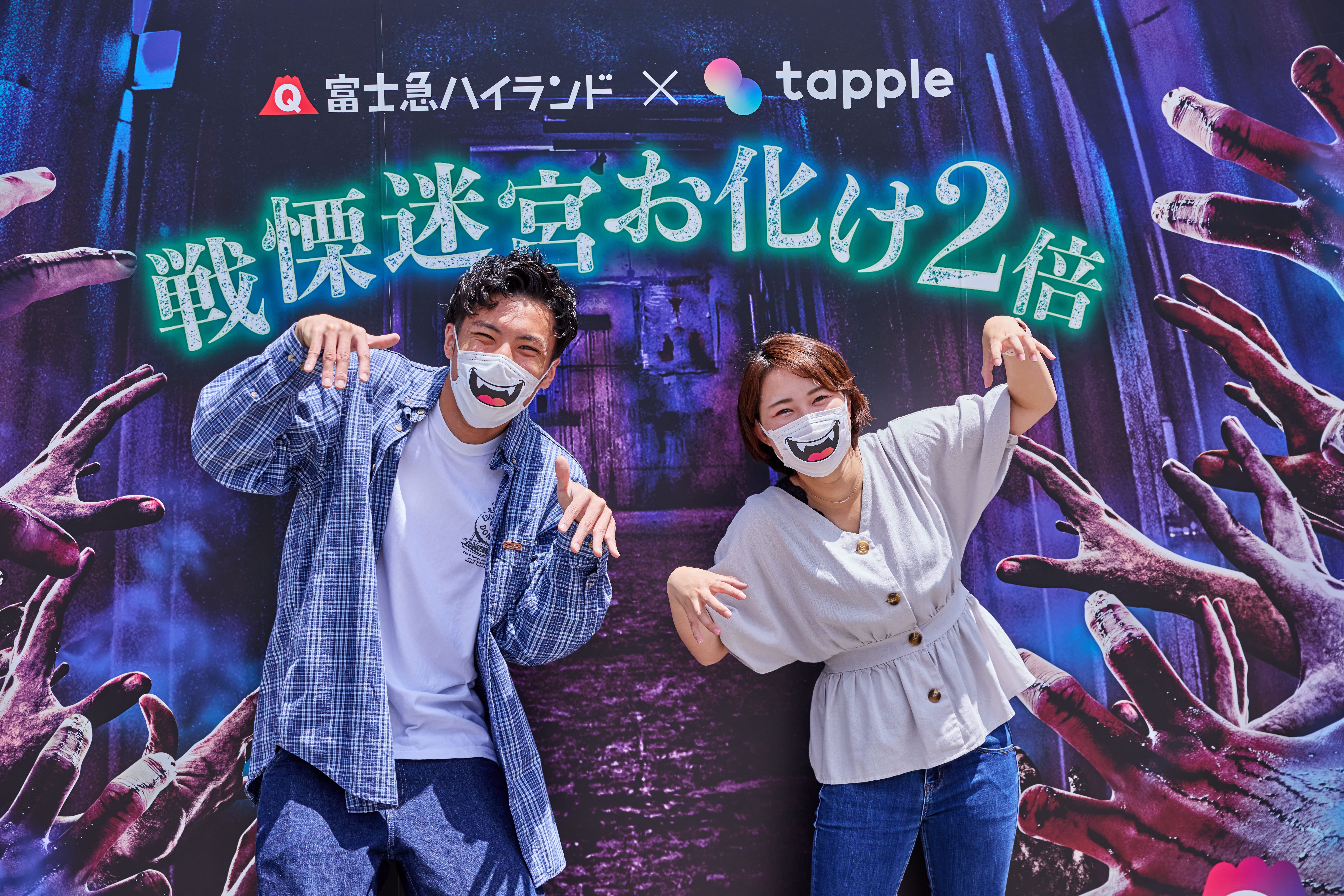 カップルで参加している方へは、にやりと笑ったおばけの「カップル用マスクシール」を装着していただき、「戦慄迷宮」での絶叫肝試しデートを体験していただきました。