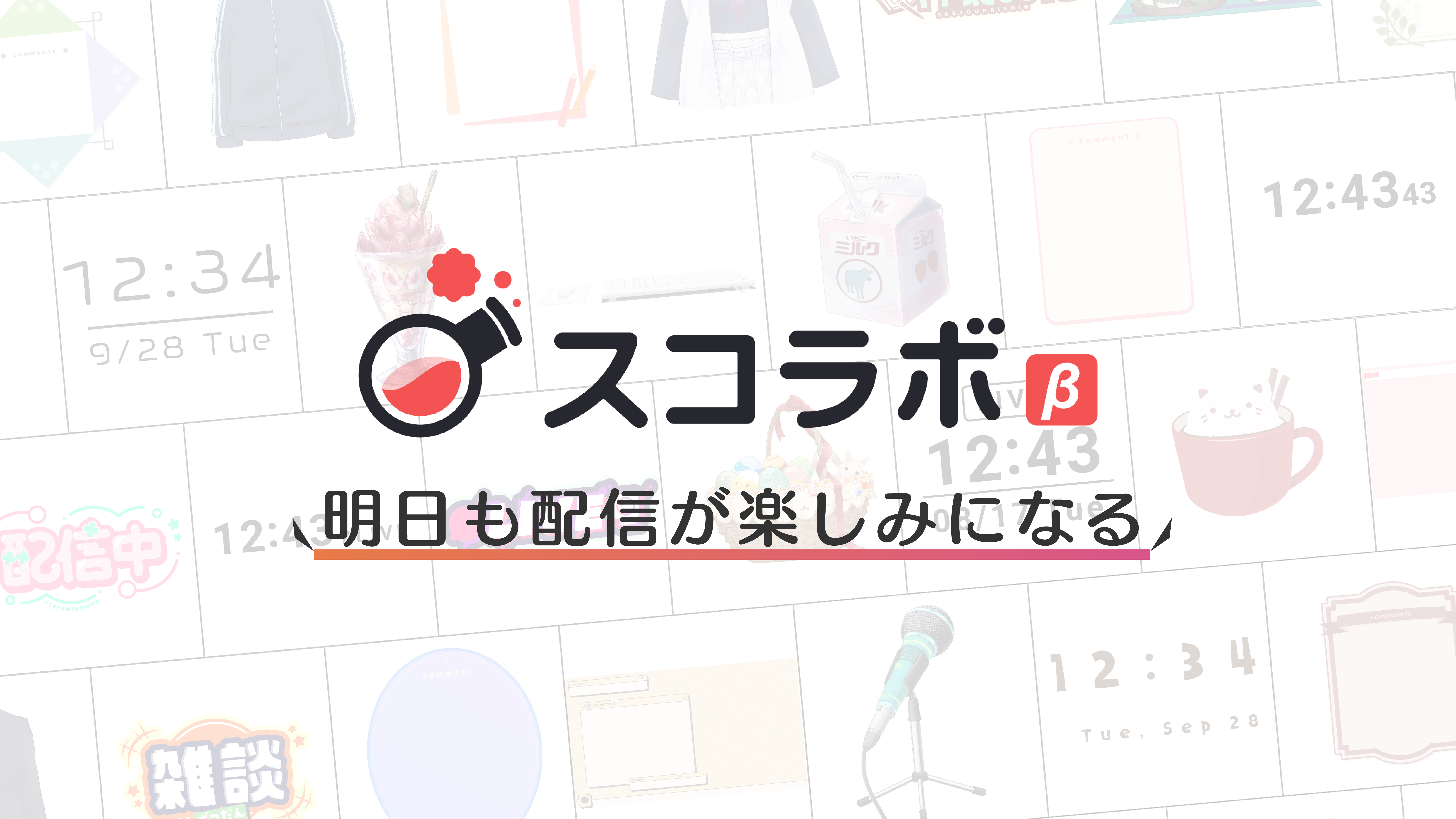 スコラボは、ブラウザ上で動作する配信画面デザインサービスです。現在オープンβテスト開催中で、4000点以上の素材を無料で配信などに利用することができます。