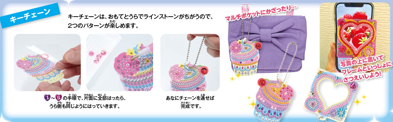人気のガールズクラフトシリーズ。キラキラのラインストーンデコの作例がたくさん入ったパッケージ人気のガールズクラフトシリーズ。キラキラのラインストーンデコの作例がたくさん入ったパッケージ