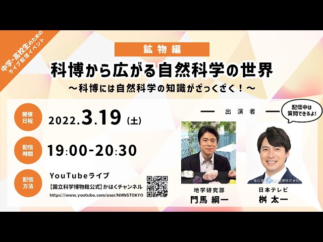 ○視聴方法:YouTube Live【国立科学博物館公式】かはくチャンネル