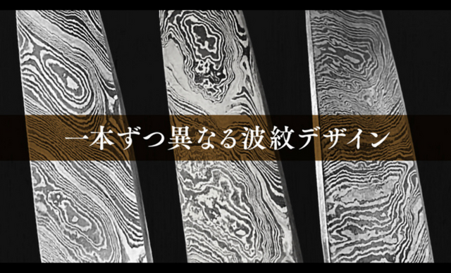 鋼には、明るいもの、灰色のもの、黒いものがあります。職人によって鋼材の組み合わせが異なり、鍛造でどのような操作を行ったかによって、一つだけのコントラストに加え、層の数や模様を作り出します。