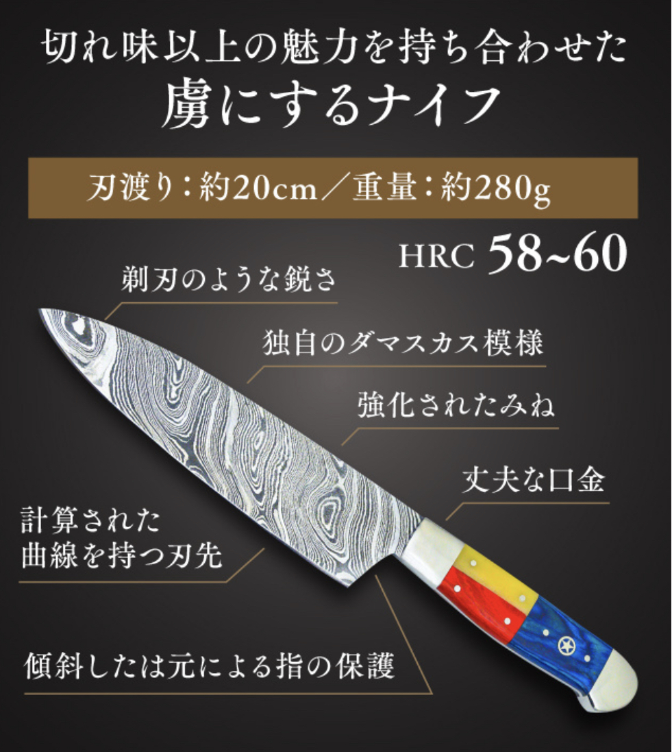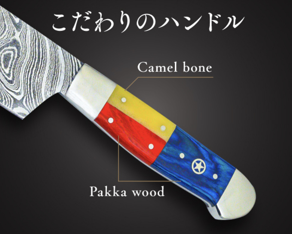 - 美しいプレミアムな模様はダマスカス鋼のみ使用し200層仕上げ