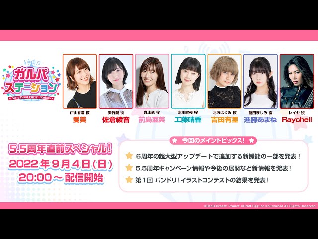 ■9月4日(日)20時より、「ガルパステーション 5.5周年直前スペシャル!」配信!