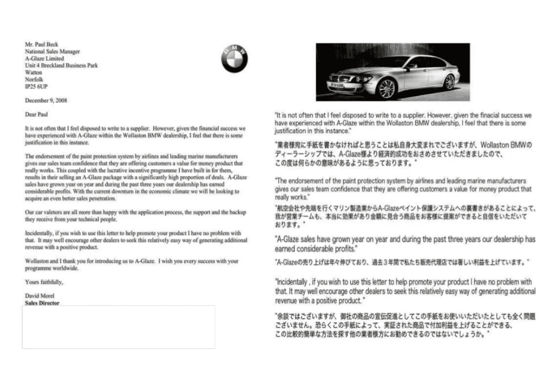 スーパーカーから、世界の大手航空会社や高級ヨットメーカーまで、世界が認めたAグレーズの「次世代ポリマー」は、下地処理からコーティングまで、簡単な手順でプロも納得のパーフェクトな仕上がりを提供します。