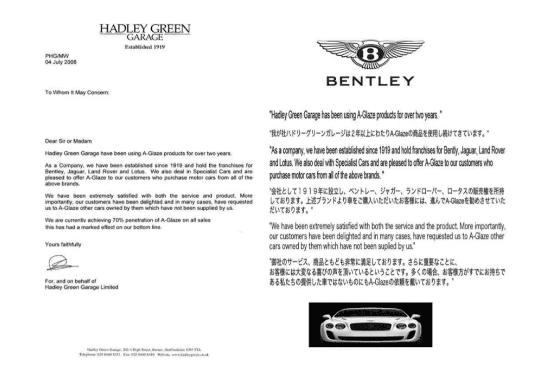 イギリス発祥のAグレーズは、欧州にてガラスコーティングからポリマーコーティングへトレンドが10年以上前から移る中、高い技術と品質でマーケットを牽引し、名だたる大手カーメーカーでの採用が進んでいます。