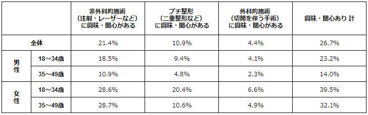- 美容医療への興味・関心