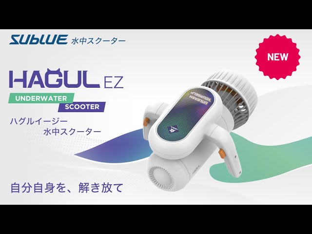 HAGUL EZ は、世界中のダイバーやマリンアクティビティユーザーに愛用される水中スクーターを製造する SUBLUE社が、水中スクーターをもっと手軽に誰にでも簡単に使っていただくために開発した、最新水中スクーターです。完全一体型のシンプルで滑らかなデザインと簡単な操作で、お子様や初心者、泳ぎが苦手な方にも安心してお使いいただけます。