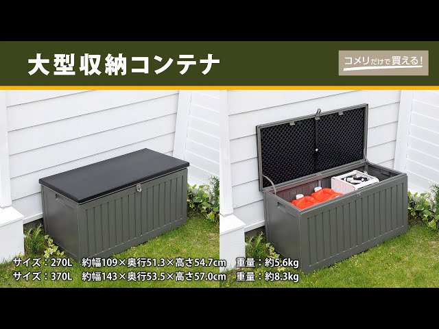 物置ほどしっかりとして大きいものではなくても、園芸用品やレジャーグッズなどをお庭で物を収納したい方におすすめの「フルオープンガーデンコンテナ」が、この度コメリより新たに発売します。710L、1,130Lと大容量サイズのため、植物の肥料やお子さんのおもちゃはもちろん、折りたたみ自転車や小型農機具まで幅広く収納することができます。また、上蓋だけでなく前扉もつけ、簡単に出し入れができるよう、使いやすさにもこだわりました。本商品は樹脂製素材にも関わらず、底板は約300㎏の重さに耐えられ、南京錠留め具付きのため、安心してたくさん収納いただけます。
