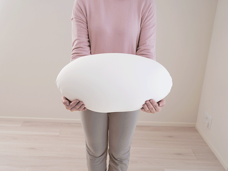 中素材に細かなパウダー状のビーズを使用することで、まるでジェルのような不思議なムニュとろ感触に。体に合わせてムニュ~っと変形してぴったりフィット。首や肩、肘に集中しがちな体重を分散してくれます。