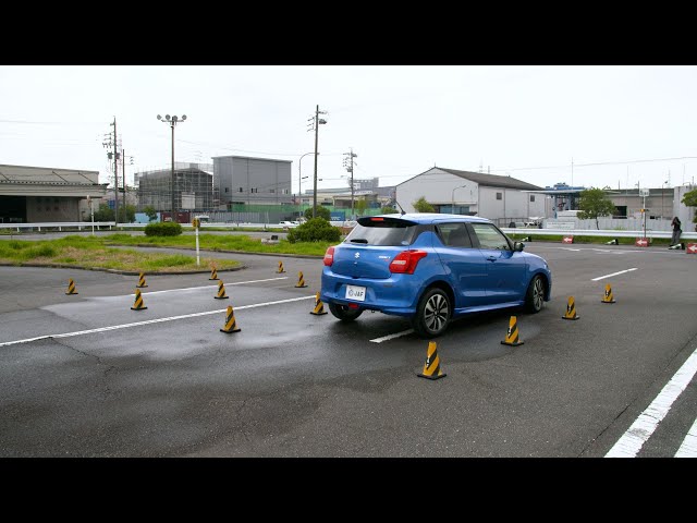 等間隔で一列に並べられたパイロン(三角コーン)の間を、「早く」「近く」「接触しない」でジグザグに走行します。ハンドル等運転操作や車の挙動を確認します。