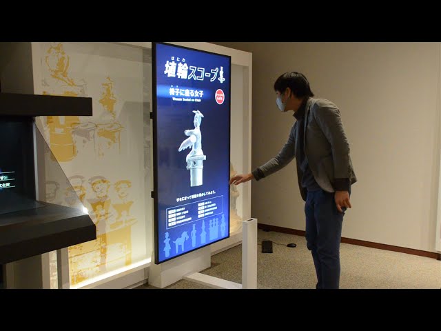 ・従来のようなガラス越しでの実物展示では観察が難しかった背面の装飾なども、リアルな3DCGモデルで疑似的に観察でき、同じ画面に見どころや解説も表示されるため、埴輪の魅力をこれまで以上にわかりやすく学ぶことができます。