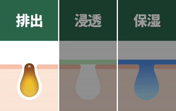 汚れなどを排出、浸透して、しっかり保湿されます。