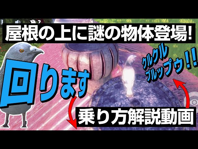 ツイッター仲間からハトが屋根の上で回る謎の物体(煙突)に乗って遊んでいる実写の動画を教えていただき、