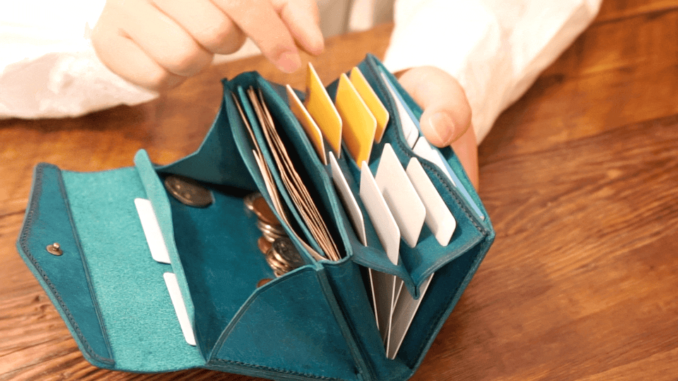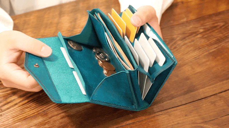 まるで飛び出す絵本のように一瞬で広がり、カードがそれぞれ独立して立ち並ぶので見やすく出し入れしやすい。8つのカードスロットは各3枚ずつ収納することができて、合計24枚のカードが収納可能です。