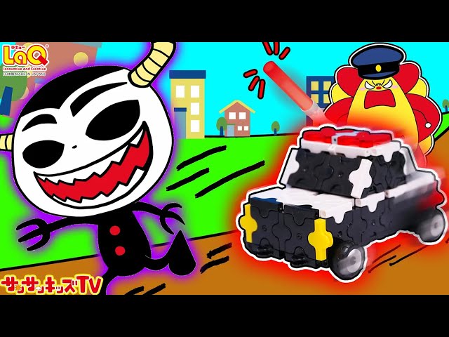 【パズル】誘拐事件発生!?指名手配犯を逮捕せよ!サンサンくもりんがパトカーで警察ごっこ♪はたらくくるまを組み立て♪LaQ