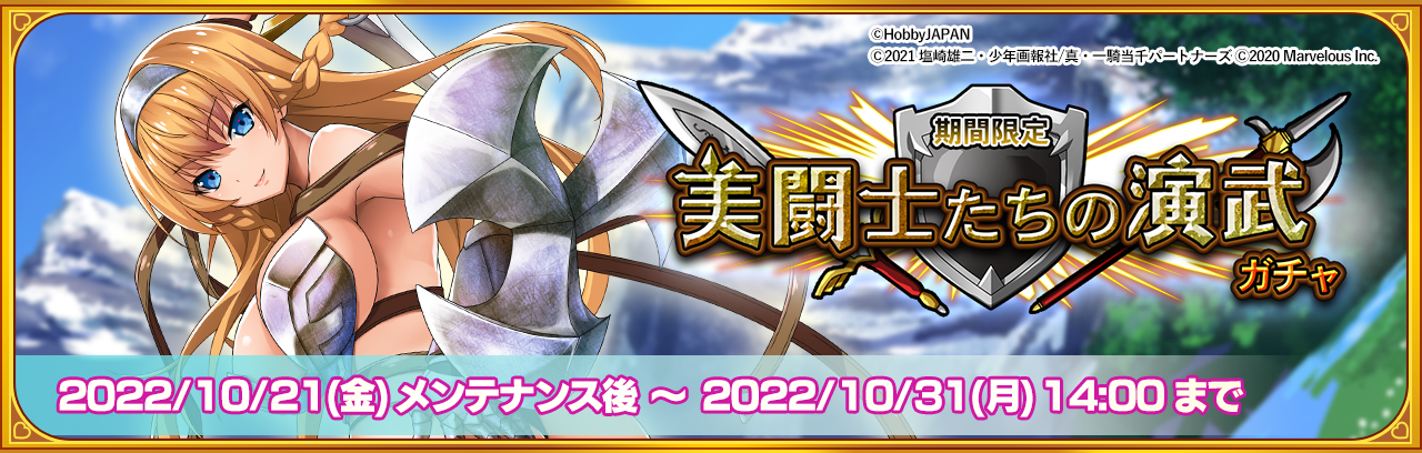 ▽クイーンズブレイドUNLIMITEDコラボ記念「美闘士たちの演武ガチャ」開催期間