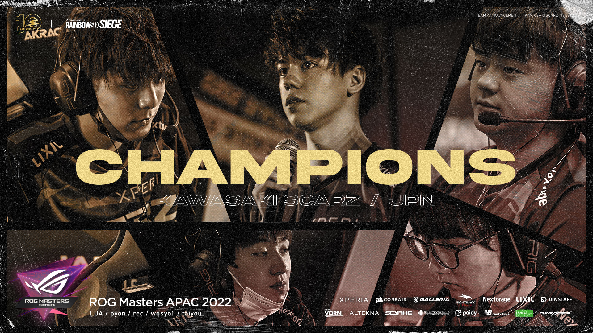 プロeスポーツチームSCARZのR6S部門が『ROG Masters APAC 2022 グランドファイナル』で優勝! プレスリリース