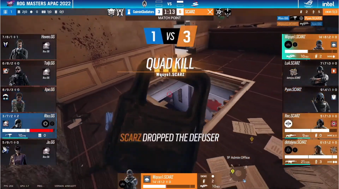 日本国内のプロ競技シーンである「RJL(Rainbow Six Japan League)」ではシーズン1とシーズン2で連続優勝、更には年間王者にも輝いたSCARZですが、「ROG Masters APAC 2022 グランドファイナル」で国際大会に初挑戦。その強さが海外チームにどこまで通用するか、国内競技シーンファンから多くの注目が集まりました。
