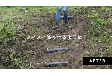 - 杭で打ち込むだけ!自然の傾斜を活かして設置できる階段です。