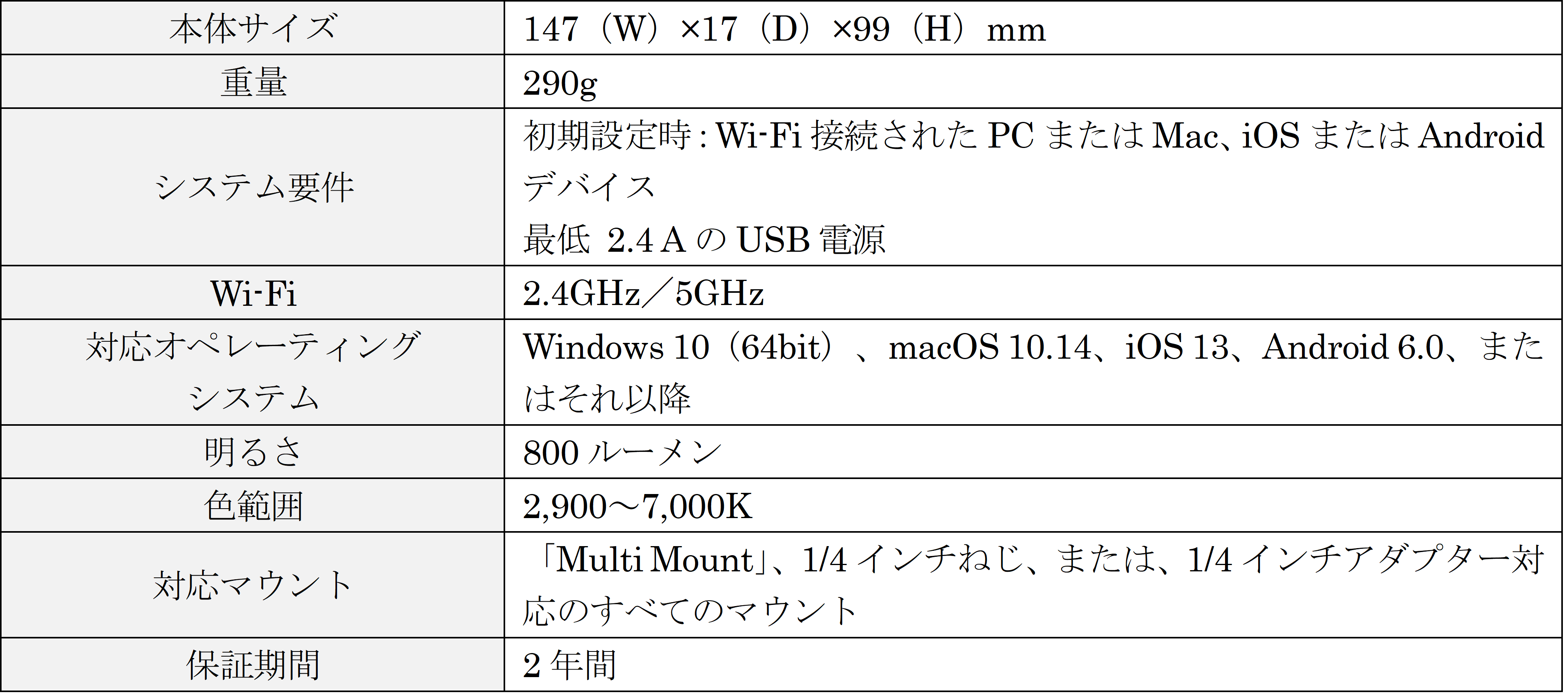 ・2,900Kから7,000Kの温白色から冷たい白色光まで幅広い色温度に設定可能