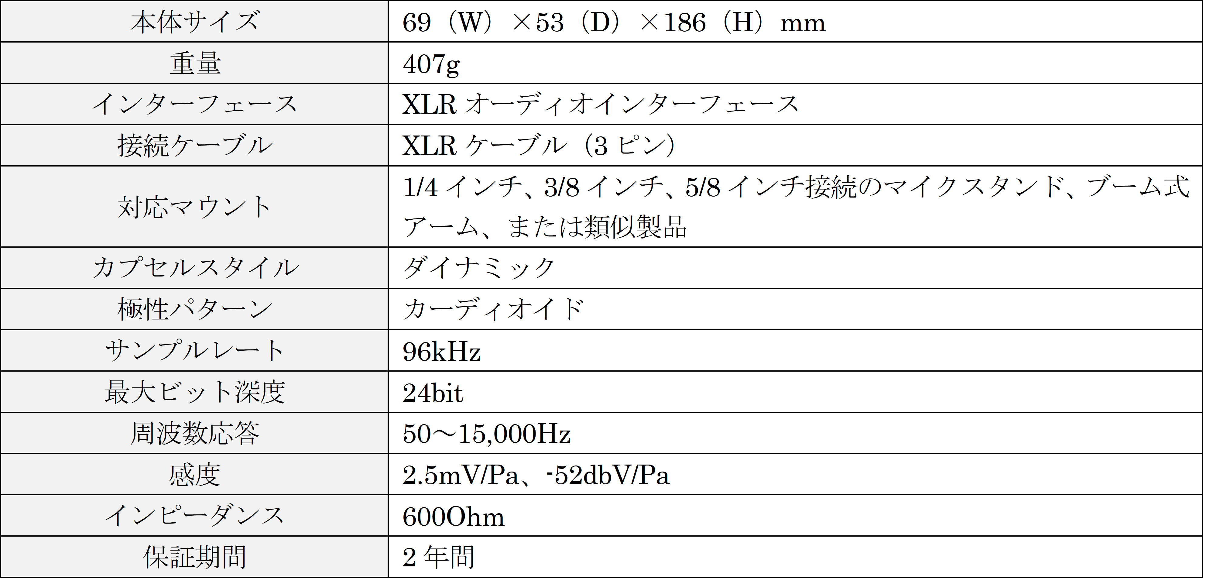 (XLRケーブルは含まれません。)