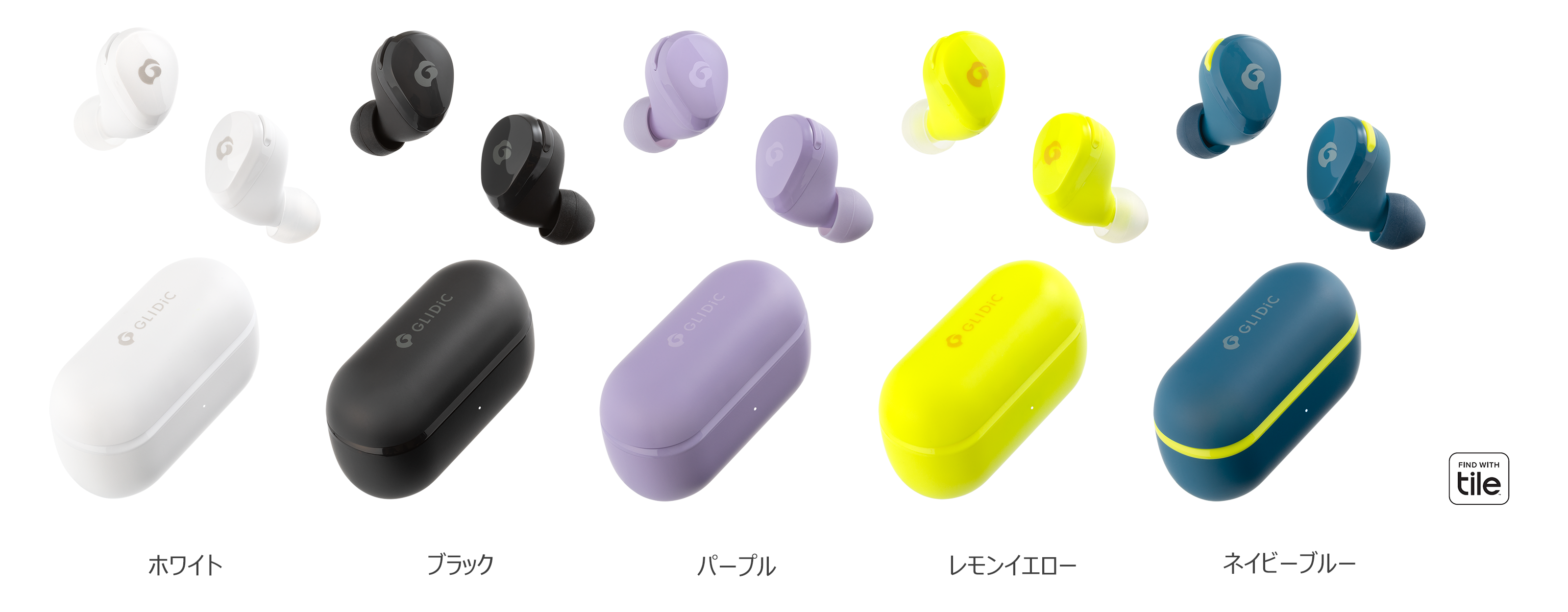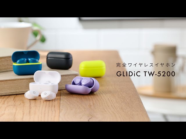 「GLIDiC TW-5200」は、驚きの小ささと軽さを実現しながら、Hybrid ANCがもたらす静寂がクリアで繊細なサウンドを生み出し、マルチポイント機能や通話時のノイズリダクション機能、Bass Sound Mode※2(低音重視モード)で、広がる音体験を追求したGLIDiCの最新モデルです。軽くてコンパクトな「GLIDiC TW-5200」は、マットとグロスのコントラストが美しく、ベーシックな「ホワイト」「ブラック」に加え、「パープル」「レモンイエロー」、バイカラーの「ネイビーブルー」の5カラーをラインアップします。