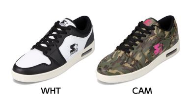 今回登場するスニーカーは、3ブランド。 「DC SHOES」からはシンプルなデザインにロゴが映える定番のDC SHOES CURE SNとハイカットのDC SHOES CURE HI TOP SNに加え、ヒール部分に刺繍された迫力のビッグロゴとスプラッシュペイントが印象的なCOURT GRAFFIK。「STARTER BLACK LABEL」からは、ブランドが2012年にスタートさせたエクスクルーシブラインのSTRシリーズから独自AIRソール付きのSTR-001、006、007に加え、ファッション性を重視したアナザーモデルから、バッシュの古典モデルを彷彿とさせるSTR-009、カモフラージュ柄やピンクロゴなどが新鮮なSTR-008が登場です。また、「FILA」からは、結んだ紐がしまえるポケットや、ノンマーキング加工のアウトソールなど、ダンスやコート回りでのパフォーマンスに適したTatticaD RIの2カラー。自身の活動のみならず、数多くのアーティストの振付や総合演出なども手掛けるKENZO氏の着こなしは、スポーツや、ストリートスタイルを、大人の遊び心あるエッジが効いたコーデに仕上げています。