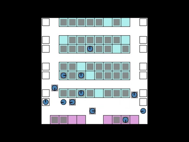 1. 他のAGVが将来的にどう動くのかを考慮して経路計画をするため、衝突がほぼ起こらない。