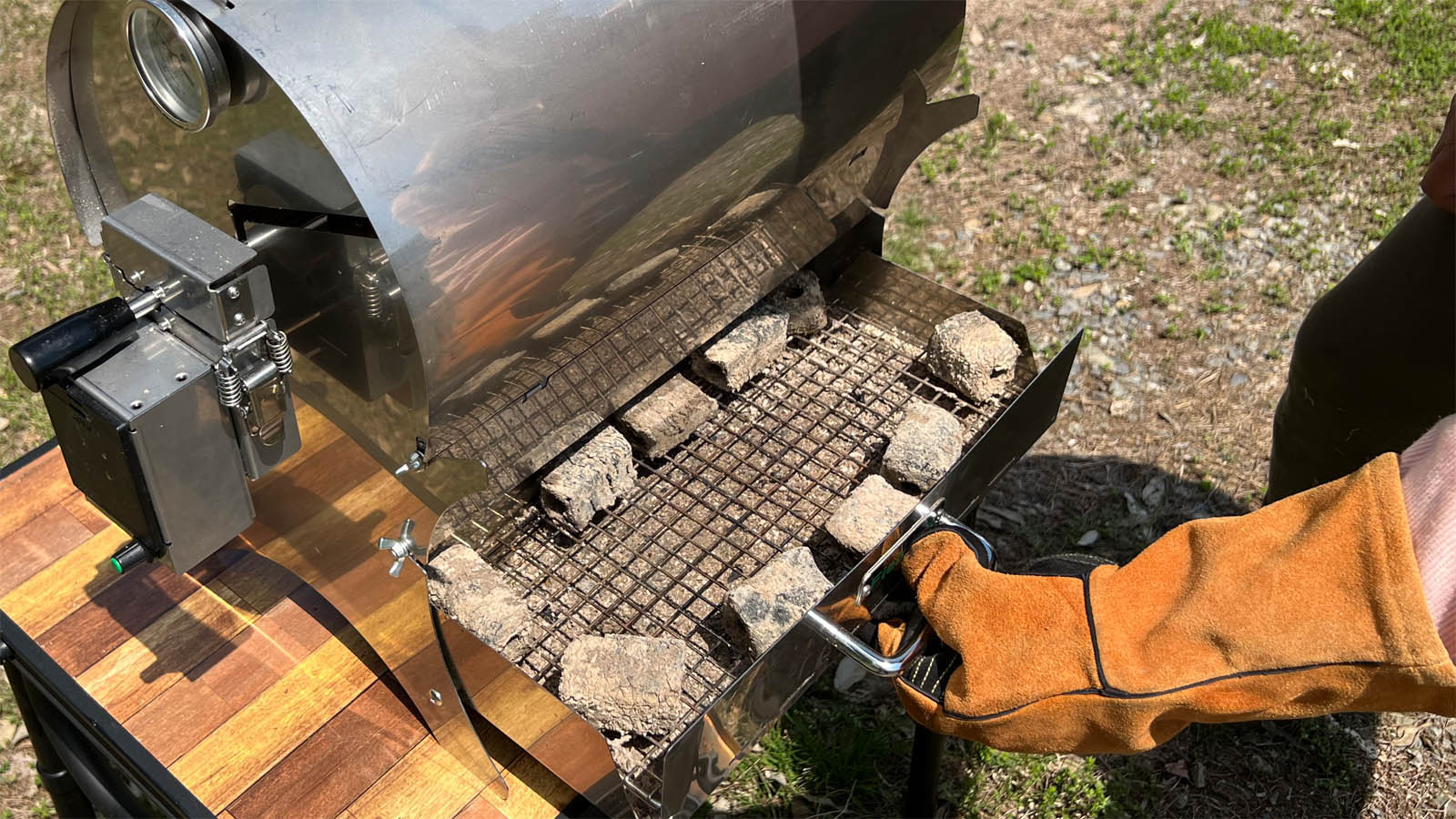 ローリングリルは炭床が簡単に引き出せるので、炭の出し入れが簡単。