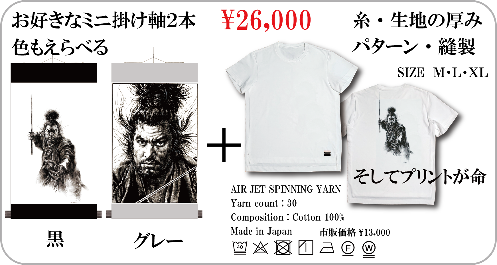 『ミニ掛け軸とこだわりのTシャツ』『ミニ掛け軸と京扇⼦』のセットメニューなどバラエティーにとんだリターン メニューをご⽤意しています。