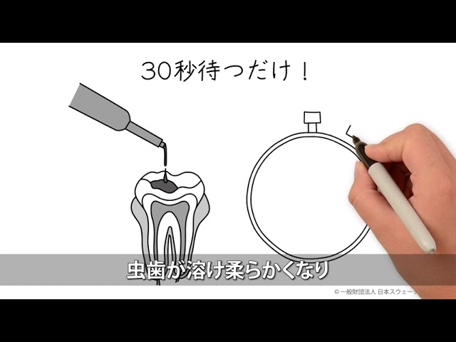 虫歯だけ軟らかく溶かし、それを特殊な器具で除去します。健康な歯質をドリルで削ることがなく、麻酔もほとんど使いません。大切な神経に触れず、治療後の歯を守る最新式の削らない虫歯治療法です。