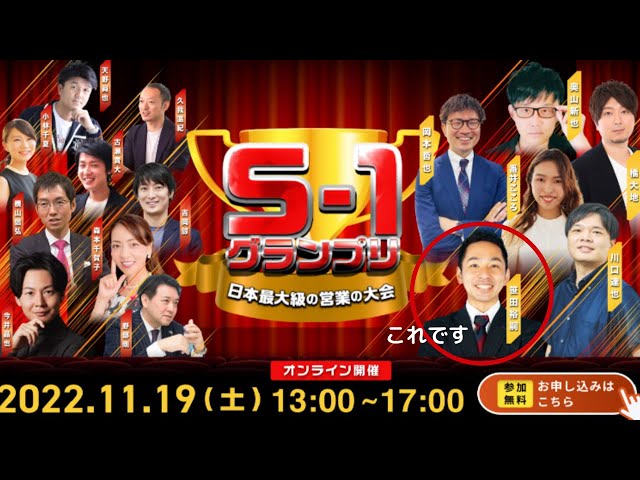 『100名近くのトップセールスから選抜、6名の挑戦者がついに決定!S1グランプリ11/19(土)13時~開催!事前申込にてアーカイブ共有もあり。』
