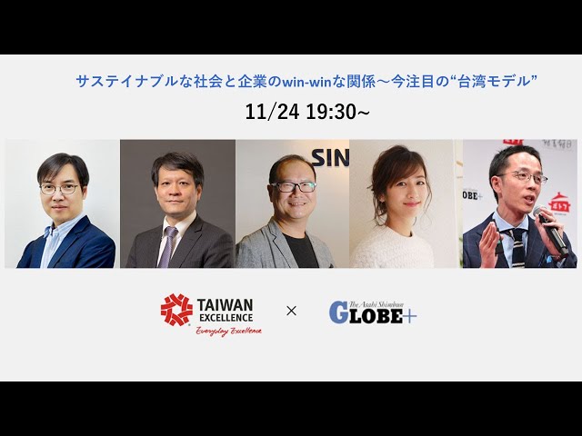 株式会社朝日新聞社(代表取締役社長:中村史郎)が運営する、世界のいまを伝えるウェブメディアGLOBE+(https://globe.asahi.com/)は、11月24日(木)午後7時30分配信予定のオンラインイベント「サステイナブルな社会と企業のwin-winな関係~今注目の“台湾モデル”」 《主催:台湾経済部国際貿易局(BOFT)・台湾貿易センター(TAITRA)》のメディアパートナーを務めます。