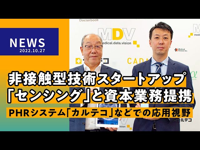 株式会社センシング(同港区、代表取締役CEO:金一石)は医療情報の一元化を目指すメディカル・データ・ビジョン株式会社(東京都千代田区、代表取締役社長:岩崎博之、以下 MDV社)と資本業務提携をしたことをお知らせいたします。MDV社が2015年6月にサービス提供を開始し、全国ですでに約4万人にご利用いただいているPHR(パーソナルヘルスレコード)システム「カルテコ」での応用も視野に、両社で技術面での連携を開始します。