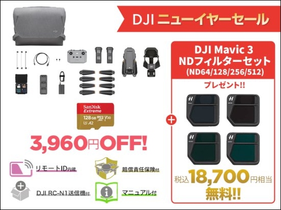 ・DJI Mavic 3【賠償責任保険付】 NDフィルターセット プレゼント