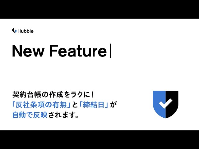 契約書管理クラウドサービス「Hubble」、契約管理がよりラクに。 契約情報の自動反映機能に「反社条項の有無」と「締結日」を追加 プレスリリース