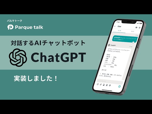 パルケトークではチャットアプリの中でもChatGPTにいち早く着目し、トーク内でChatGPTをメンション[@ChatGPT]して質問を送信すると、ChatGPTから回答を受信するという「チャットボット機能(β版)」を追加しました。
