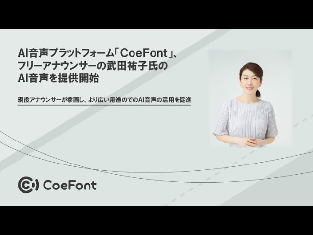AI音声プラットフォーム「CoeFont」、フリーアナウンサーの武田祐子氏のAI音声を提供開始 プレスリリース