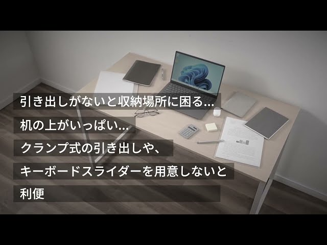 引き出しがあらかじめ取り付けられており収納場所に困らない昇降デスクです。