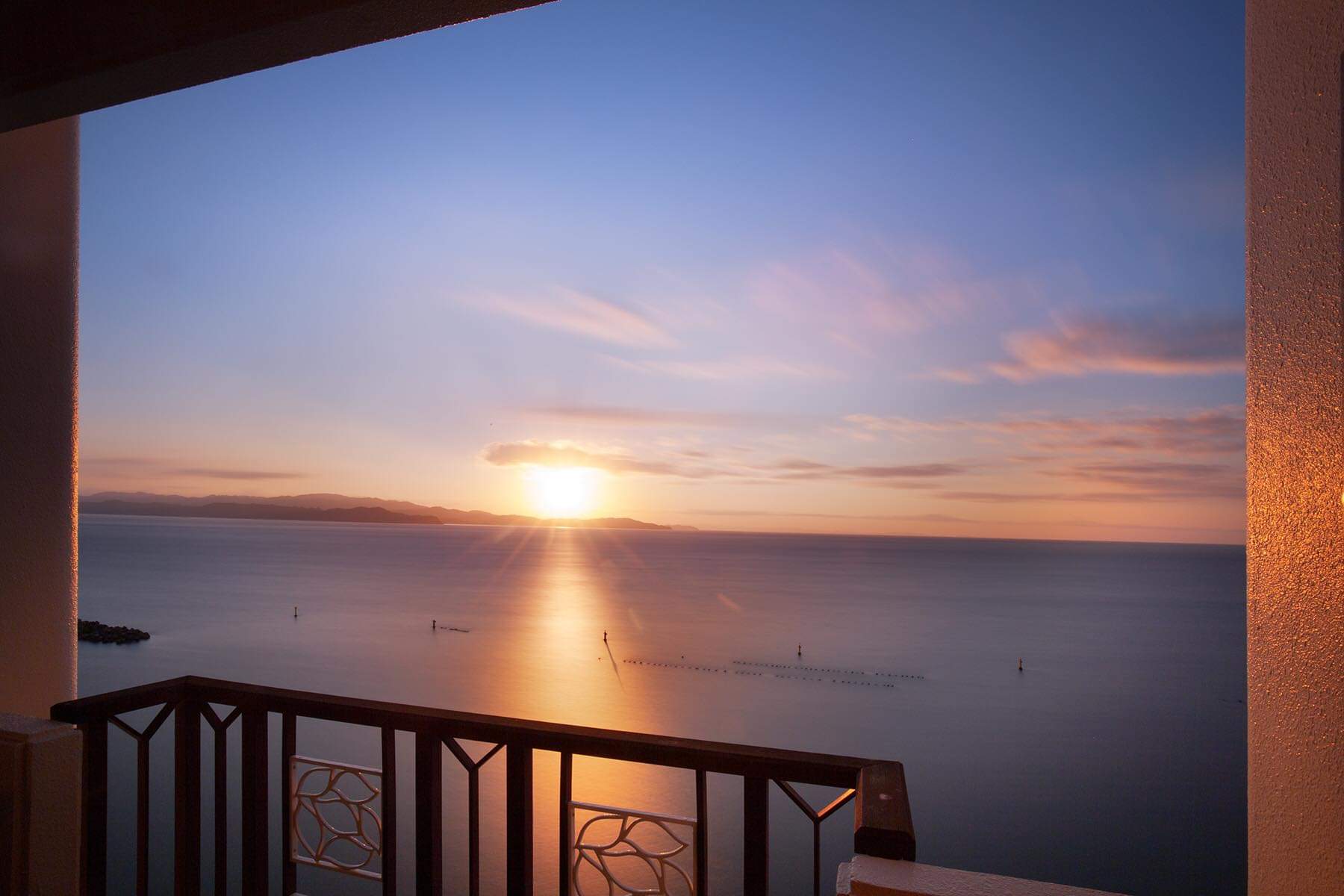 *海に昇る朝日と満月の前後にはムーンロードを望む洋室