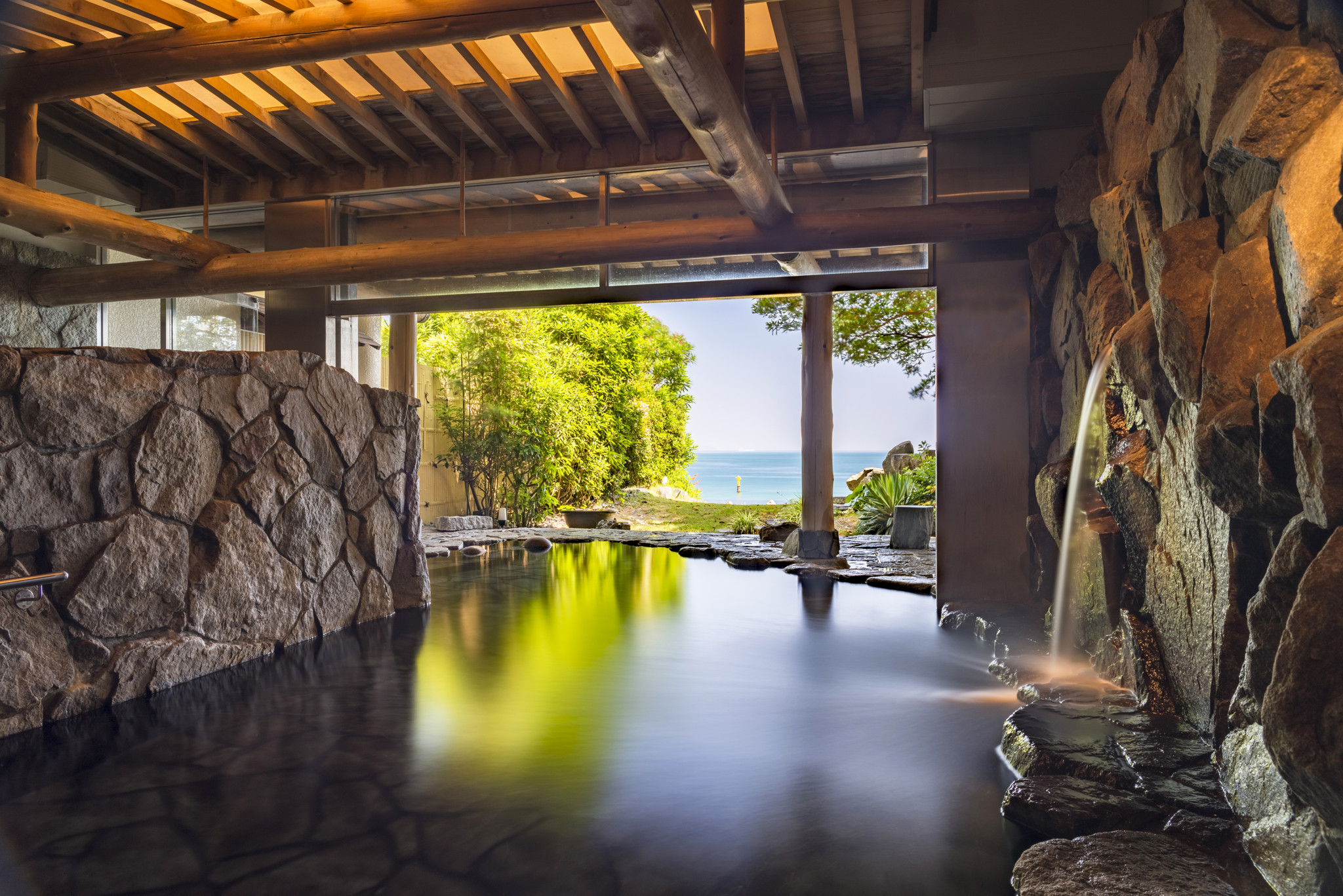 瀬戸内海国立公園内、海に昇る朝日や日本百名月に選ばれた鳴門ムーンロードを客室や天然温泉から 一望するオーシャンフロントホテル。ベッドから海を見晴らせる洋室、徳島の匠による阿波藍ルームな ど、旅のスタイルで選べる客室は 15 タイプ。