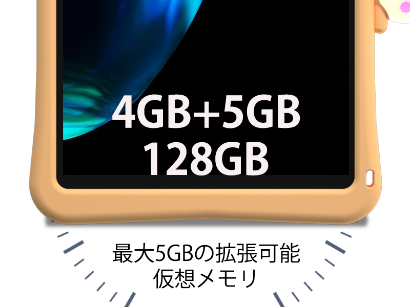 9GB(5GB+4GB仮想メモリ)が強力なメモリサポートを提供し、複数のアプリケーションやタスクを迅速かつスムーズに実行できます。 複数のアプリを切り替えたり、高性能なゲームを実行したりと、同時にマルチタスクが可能で、スムーズなユーザー体験をお約束します。