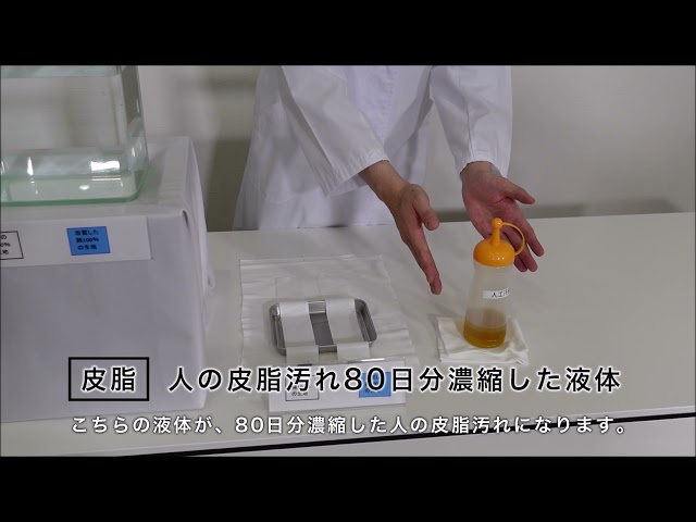 グンゼでは、ニオイに色を付け可視化した消臭効果の実証実験を実施しました。