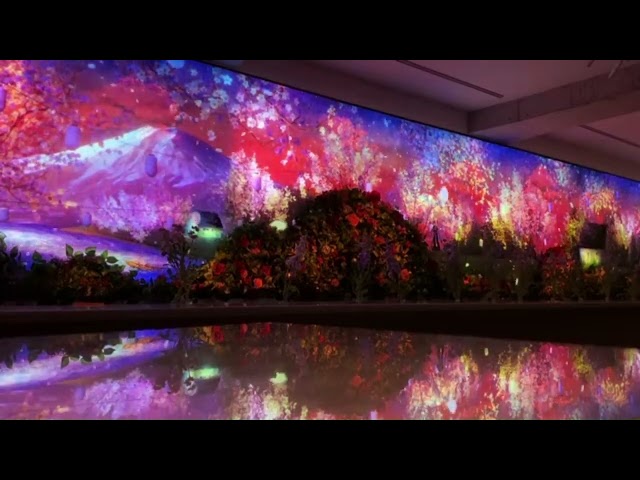 お花見の定番である桜から、藤、水仙など四季折々の花々に、日本の象徴ともいえる富士山など日本文化が感じられるプロジェクションマッピングを投影。春から冬までの四季に合わせた音楽と共に映像をお楽しみください。