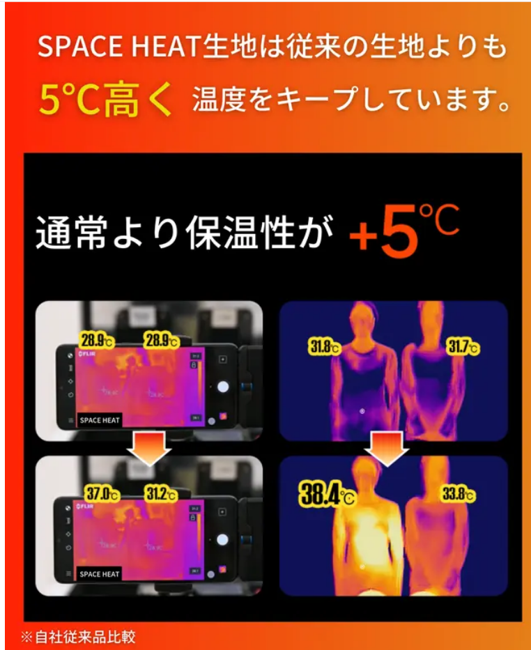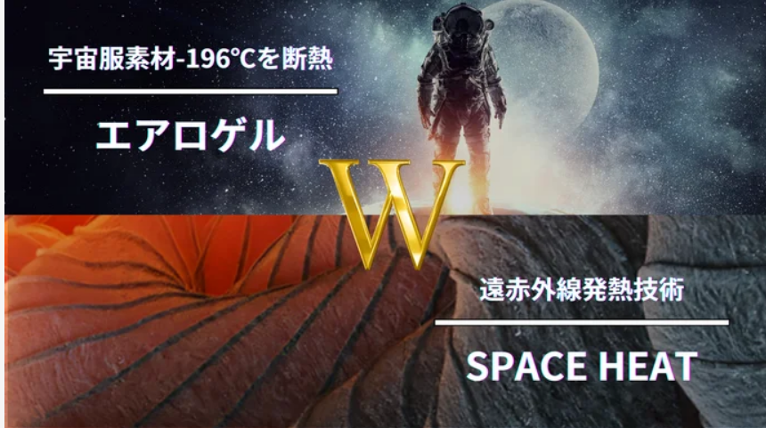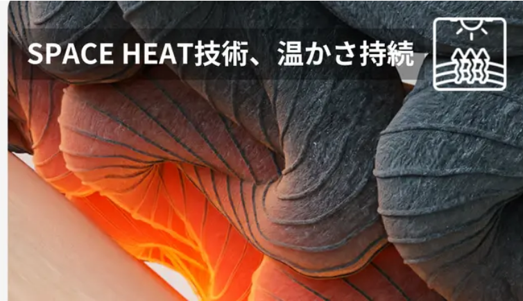 ※SPACEHEAT技術とは遠赤外線加熱技術を採用し、人体から放射される遠赤外線を吸収し、内部の分子と原子との共鳴によって熱エネルギーを発生させ、保暖効果を実現。