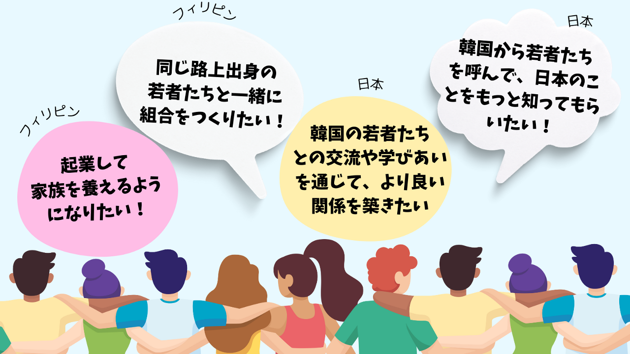 さらに、「日韓みらい若者支援」として、日本と韓国の若者たちが共通の歴史観をもち、新しい関係をつくっていくための学びの機会を提供しています。