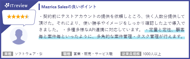 ▶︎Mazrica Salesレビュー一覧:https://www.itreview.jp/products/senses/reviews