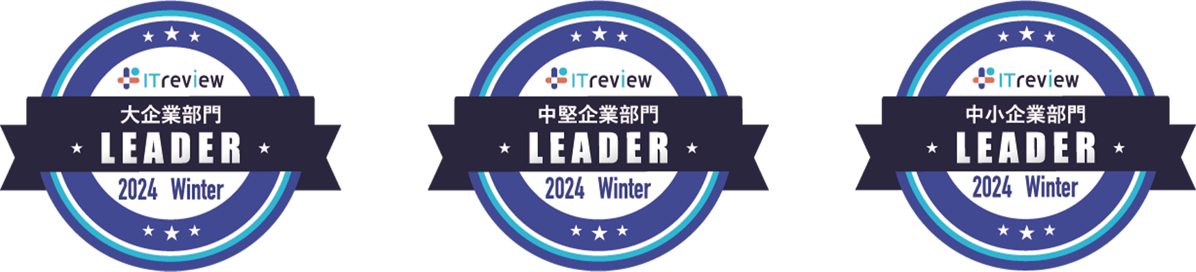 3年間連続でLeaderを取得している製品には「3年連続Leader」のバッジが発行されております。絶え間なくユーザーレビューを収集しユーザーの声に耳を傾けつつ、評価され続けた製品が受賞しております。