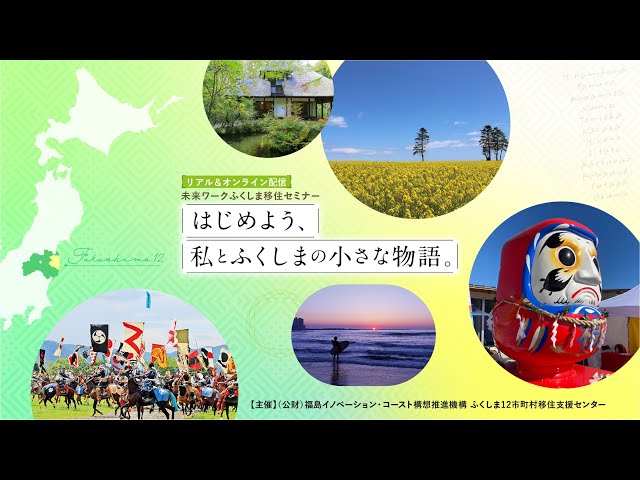 「ふくしま12市町村(※)移住支援センター」は、福島12市町村で働くこと、生活すること、チャレンジすることを検討されている方に向けた、移住セミナー『はじめよう、私とふくしまの小さな物語』(全6回)を開催しています。