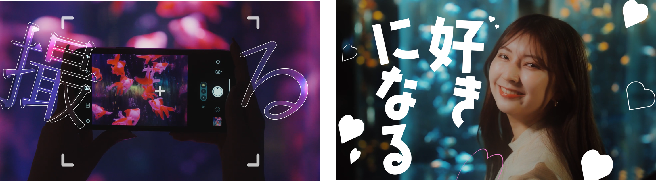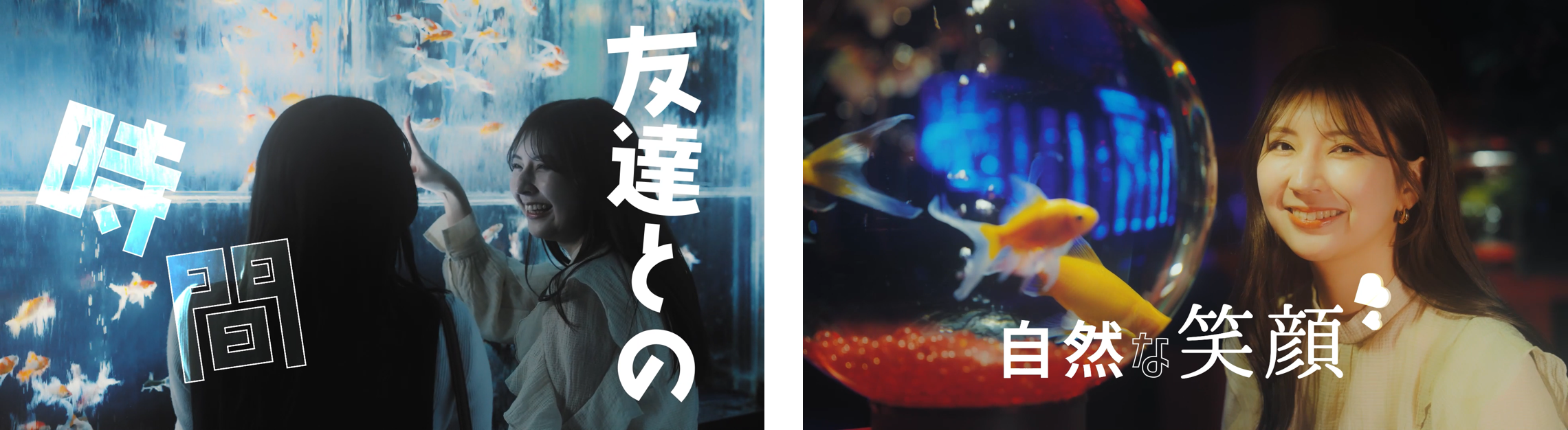 本CM映像では、アートアクアリウム美術館へ遊びにきた女性が、きれいな空間に癒され、帰ってからも何度も見たくなるような写真を撮り、一緒に来た友人との時間を楽しみ、自然と笑顔になる様子を描いています。気づくと、アートアクアリウム美術館は“自分が好きになる”場所に。